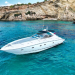 This stylish Sunseeker Portofino motor yacht has all the special touches of luxury that you’d expect from those prestigious British yacht builders. Similar to the 47’ Sunseeker Camargue, she has all the same features but her extra 2 foot length means that you get to enjoy extra spacious lounging.