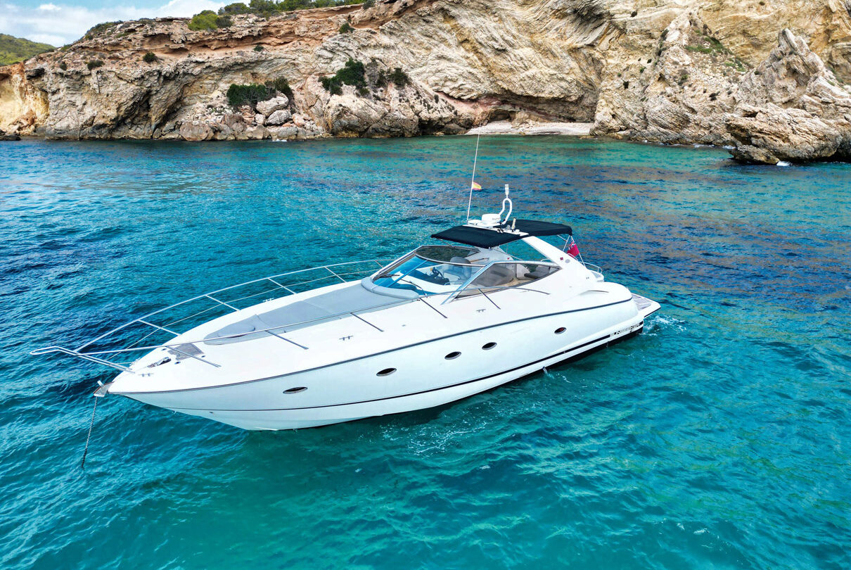 The Portofino boasts spacious sunbathing pads at both the front and rear, and is kitted out with a paddleboard, snorkel gear, and noodles for fun-filled adventures along the stunning coastlines of Ibiza and Formentera. For an enhanced experience, consider adding a Seabob to your booking at an additional cost.
